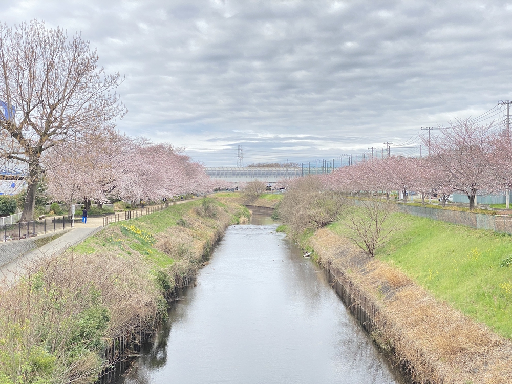 家々の間を縫うように流れる黒目川。土手と水面の距離が近いので、水音を聞きながら走れます。