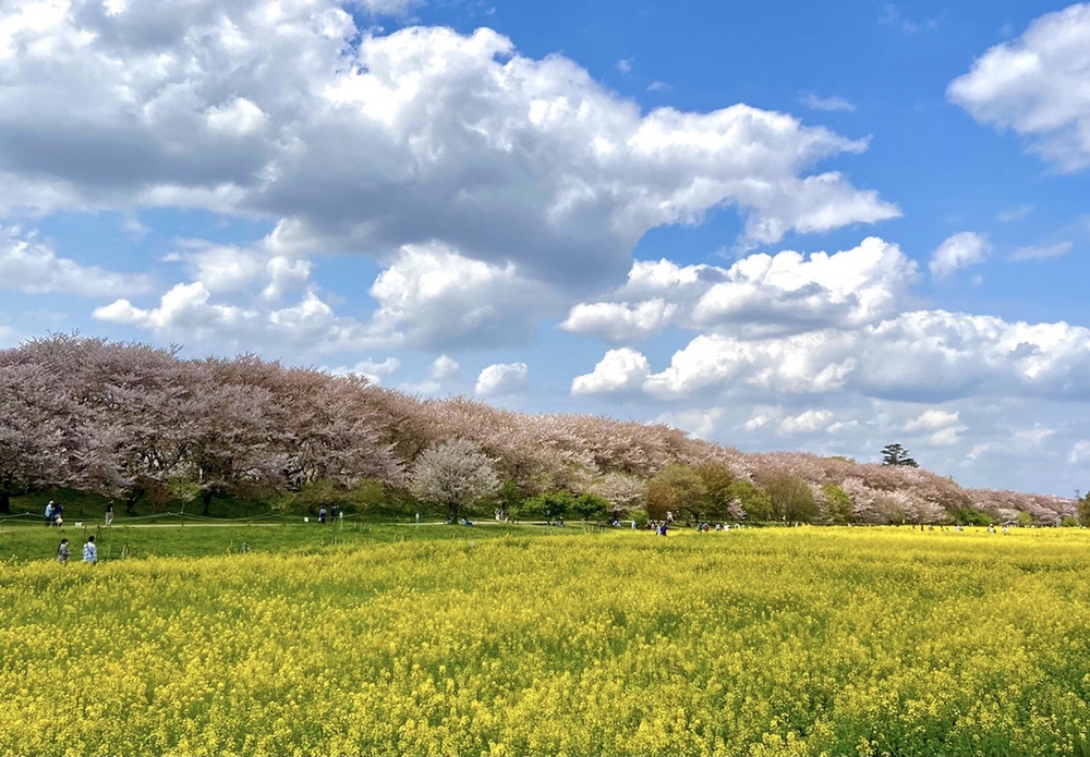 幸手駅を起点に、幸手権現堂の桜堤と行幸湖での花見ラン。菜の花の黄色、桜のピンク、空の青のトリコロールが楽しめます。往路は江戸中期まで使われていた日光道中旧街道を、復路は新街道を観光名所などに立ち寄りながら。
