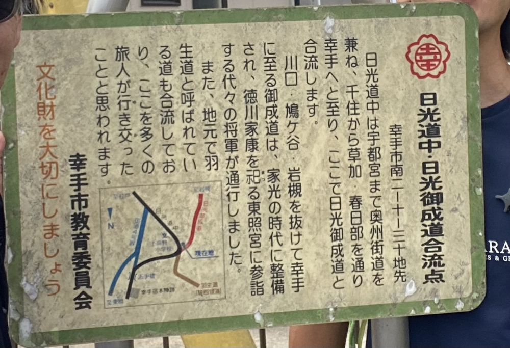 江戸時代、将軍が日光に参内する時にだけ使われた日光御成道が、日光道中と合流する幸手宿の外れをスタートし、岩槻宿〜鳩ヶ谷宿〜川口宿〜岩淵宿〜本郷追分(中山道との分岐)を経て江戸城まで(今回のゴールはその手前の稲荷湯まで)の53km