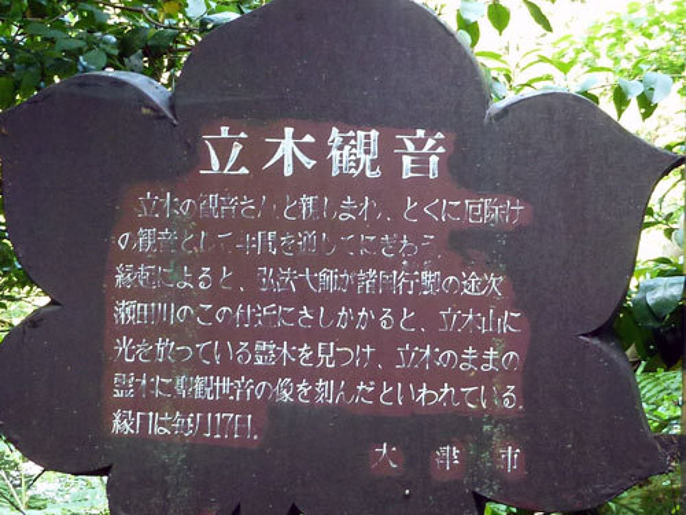 寺伝によれば、815年(弘仁6年)、空海(弘法大師)がこの地に立ち寄った際、瀬田川の対岸に光り輝く霊木を見つけた。ところが川の流れが速く、渡れないでいるところに白鹿が現れ、大師を背に乗せ対岸まで導いてくれた。白鹿はたちまち観世音菩薩に姿を変え、虚空に消え去ったという。この奇跡に感服した弘法大師は霊木に五尺三寸の観世音菩薩像を彫刻し、それを本尊としてこの寺を建てたという。(wikipediaより引用)
