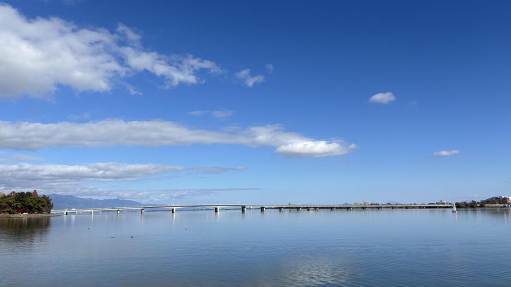 「夕照の道(せきしょうのみち)」と言われる道路のびわ湖沿いを周回するコースです。風が強い日も多いですが、いい負荷になってるかなと思います。
