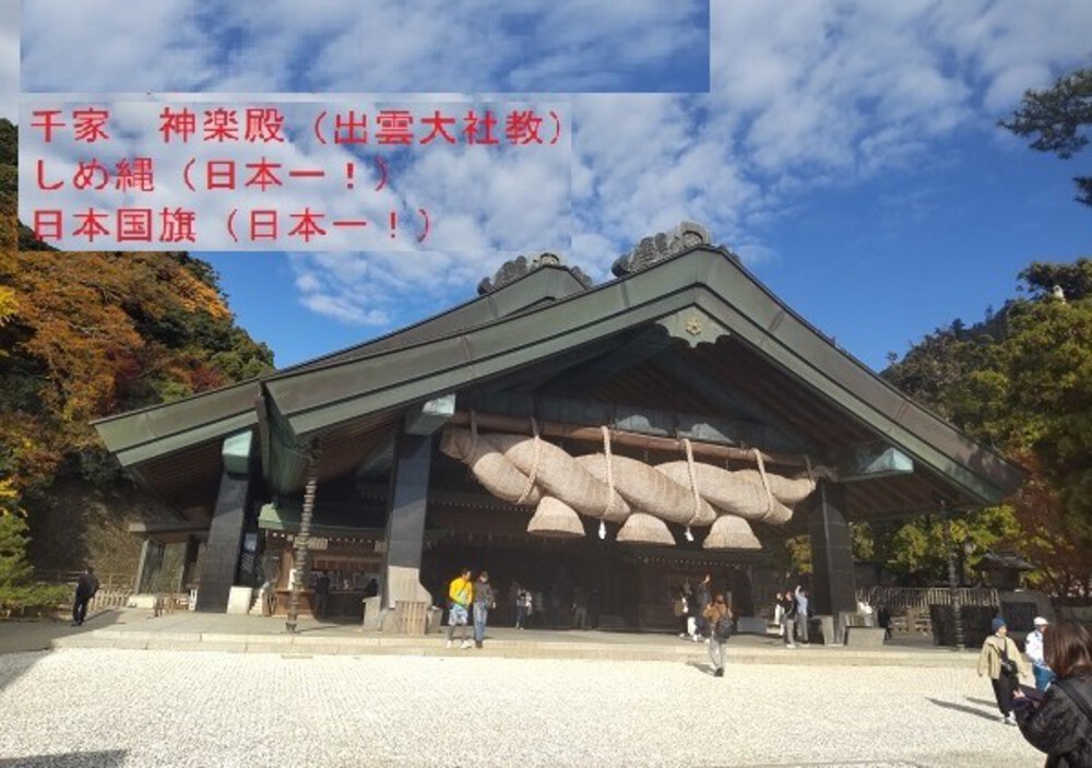 出雲大社北駐車場から(西方向)→左手に出雲阿国墓→奉納山公園展望台(稲佐の浜の眺望)→上宮(神在月の神様の会議場)→稲佐の浜(神迎の神事)(南方向)→海岸沿い(東方向)→平和そば(出雲そばと親子丼絶品!)→出雲大社参道商店街(北方向)→出雲大社勢溜り(東方向)→ファミリーマート西側(北方向へ)→真名井の清水(西方向へ)→北島国造館→出雲大社本殿→千家神楽殿→ゴール