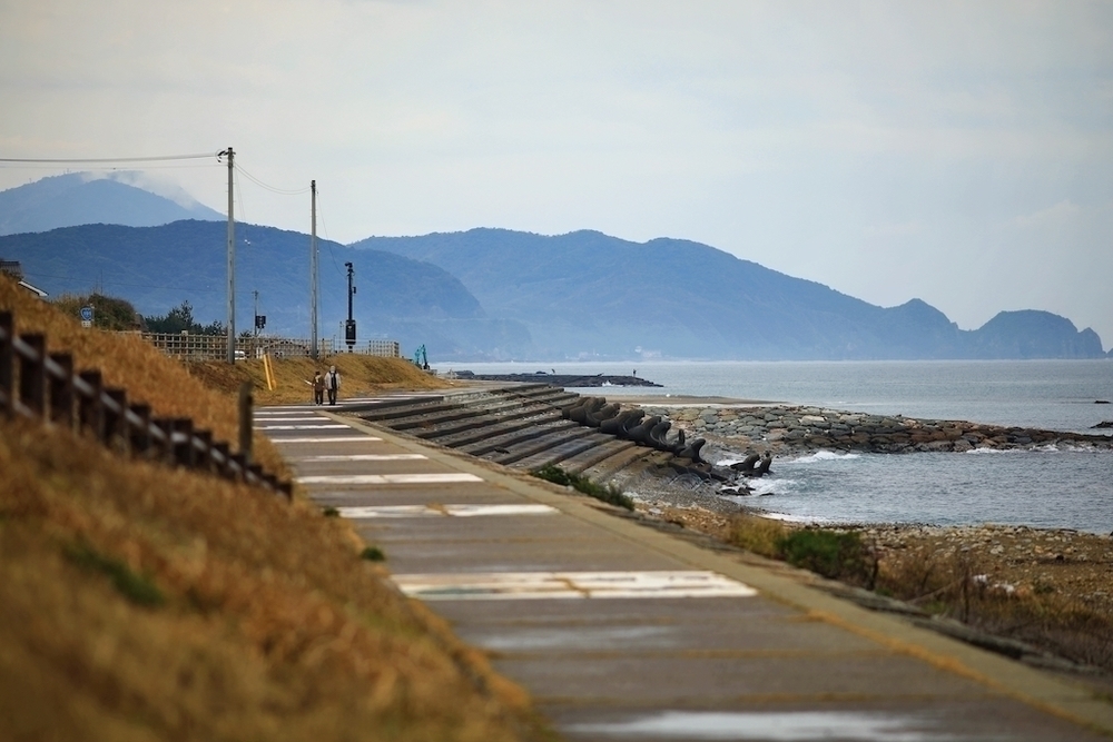 島根県益田市には持石海岸があり、この場所は一直線の海岸線が綺麗なシーサイドコースです。国道191号線沿いの歩道から見る海も綺麗ですが、三里ヶ浜の近くには遊歩道があり、より海の近くでシーサイドランが楽しめます。