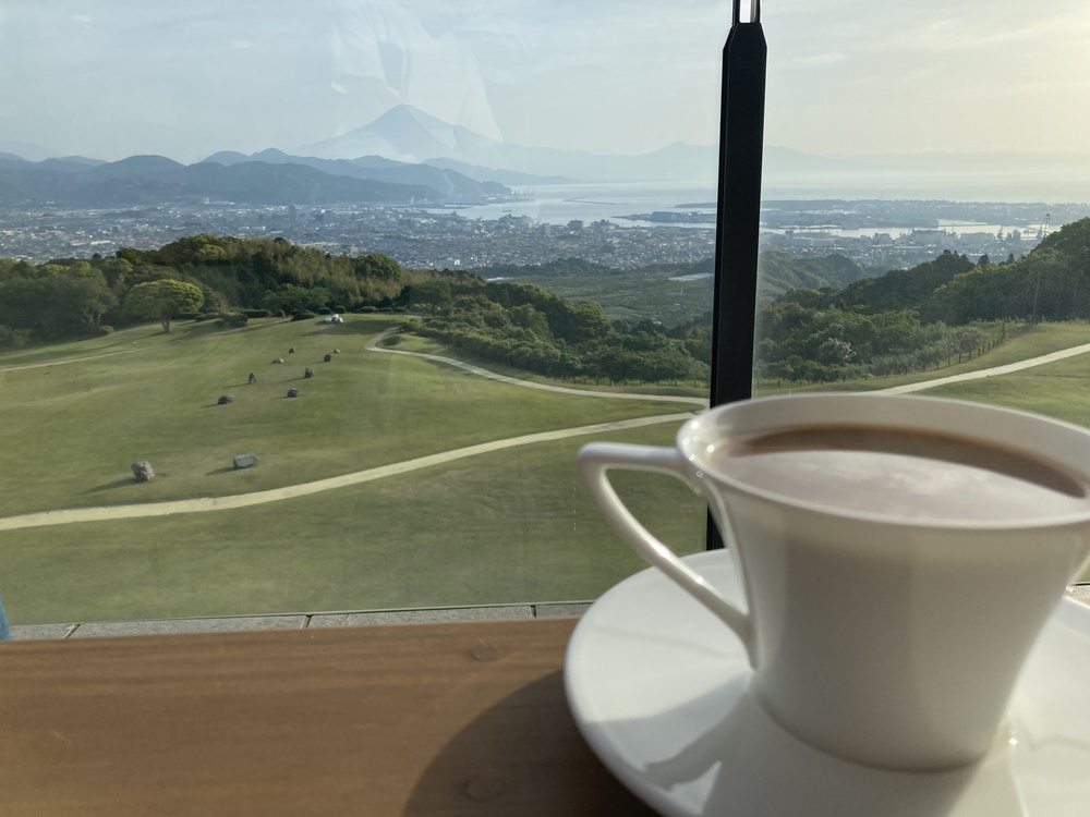 日本平ホテルの庭園からは富士山を眺望できます。遮るものがありません。伊豆半島、駿河湾、裾野からゆっくりと山頂まで目を這わすことが出来ます。