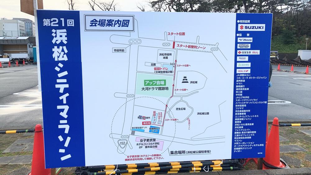浜松市役所をスタートして街中を経由、坂道を登りますが自衛隊外周は平坦なコースが続きます。浜松市四ツ池陸上競技場がフィニッシュとなります。