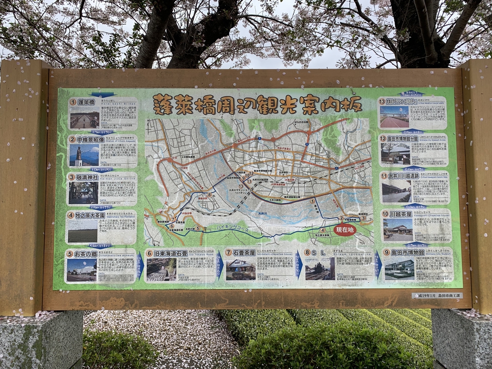 ここで引き返そうと思ったら「蓬莱橋周辺観光案内板」という看板を見つけてしまう。