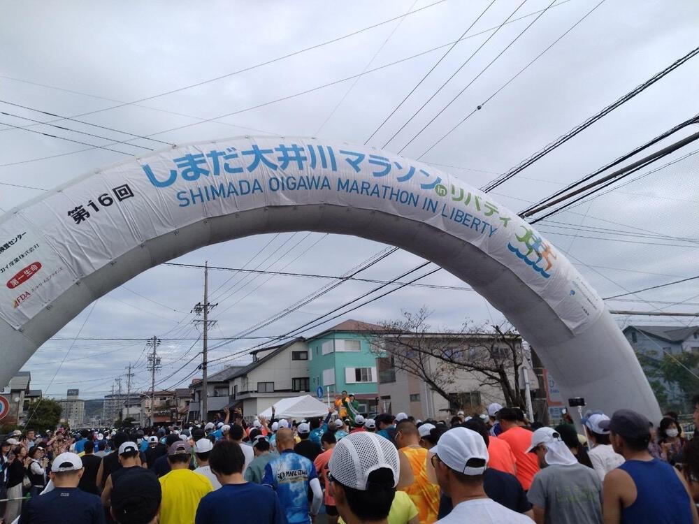 大井川沿いを走る往復のコースです。比較的アップダウンは感じませんが、実はスタート後が緩やかな下り坂。20kmを過ぎた折り返し後は緩やかな登り坂となります。