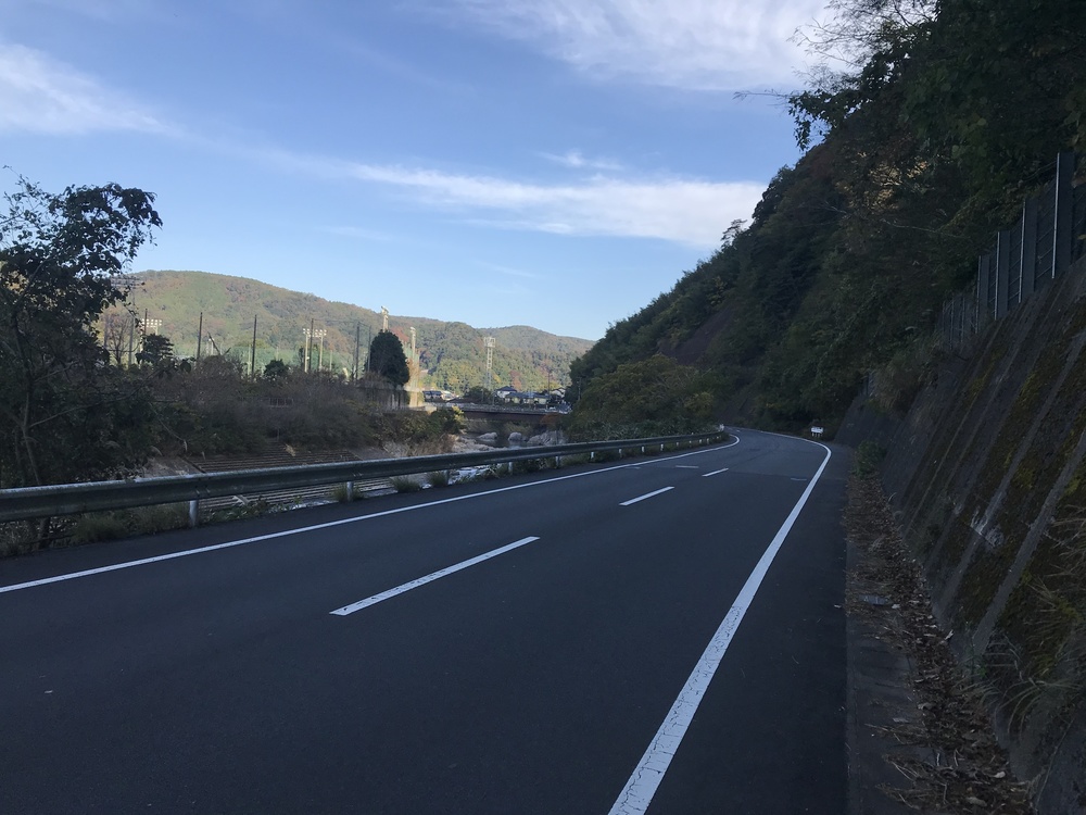 裏道のため車はさほど多くないが、道幅が狭く歩道がないところも多いため、走行には注意が必要です。