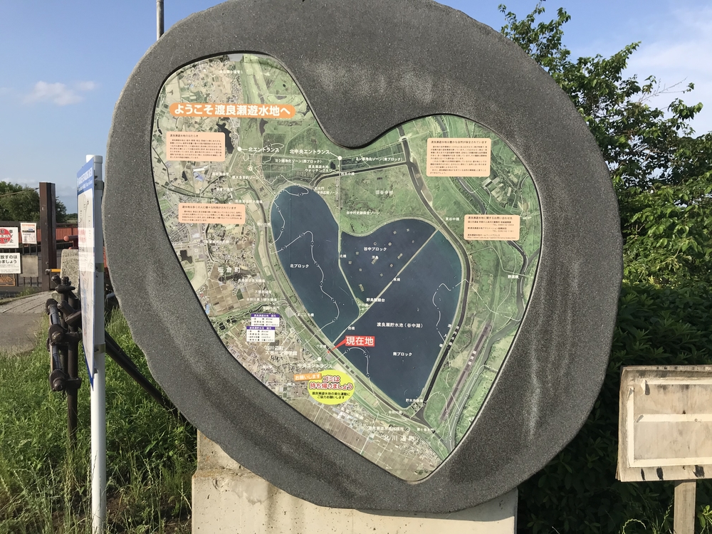 中央エントランスの駐車場に車をおいて、大きなハートを描こうと思いましたが通行できない箇所があり断念!小さいハートの風船お絵描きに変更。ついでにポッキーランに仕上げておきました。思ったより草木が生い茂っており、湖面が見えない箇所が多く、朝夕は日陰ができて夏でも大丈夫だと思いますが、夏の昼間は厳しいでしょう。