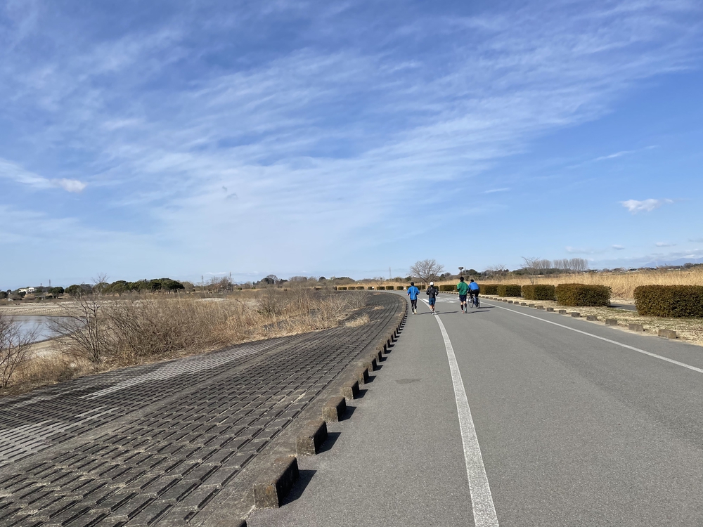 貯水池の周りを走るコースです。平坦で走りやすいです。広々として景色の眺めは抜群に良いです。