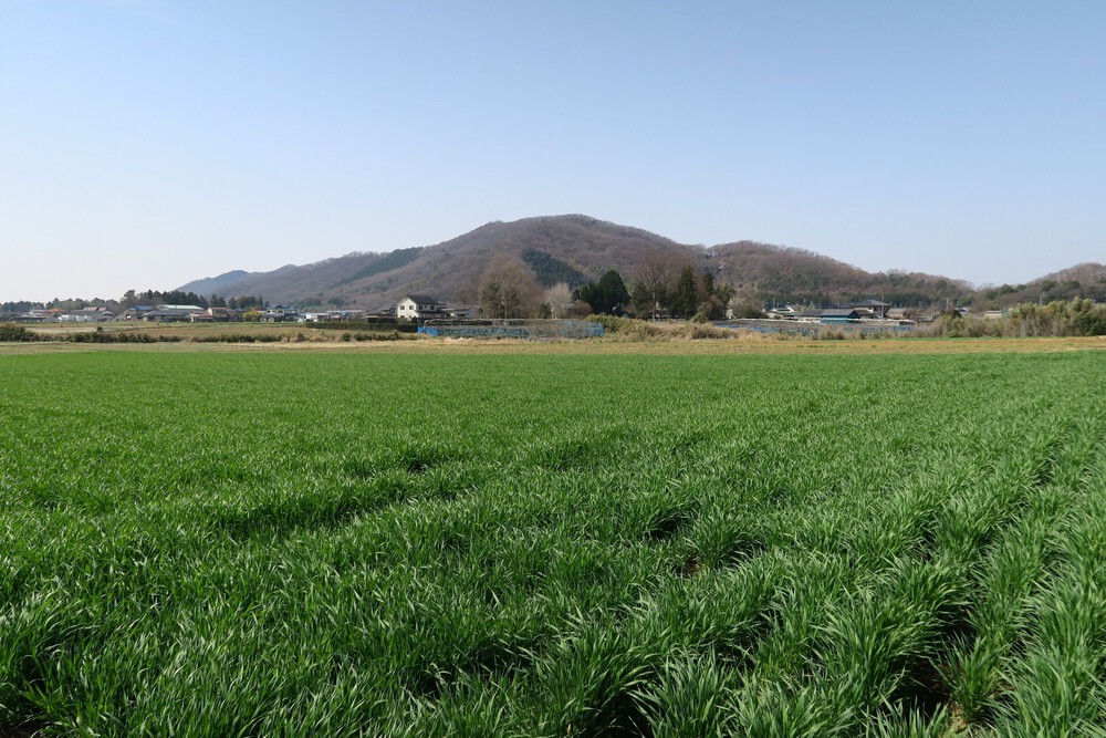 行きは後方に岩舟山、前方に三毳山を眺めながら、田舎道を気持ちよく走れます。途中、ローソンがあるので、山に持っていく食べ物や飲み物は、そこで調達することができます。