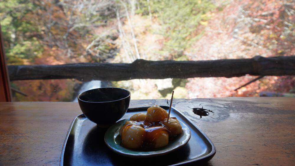 その次は龍頭の滝では、紅葉をつまみにみたらし団子を楽しんで、次は中禅寺湖畔で紅葉トンネルをひたすら爆走します。