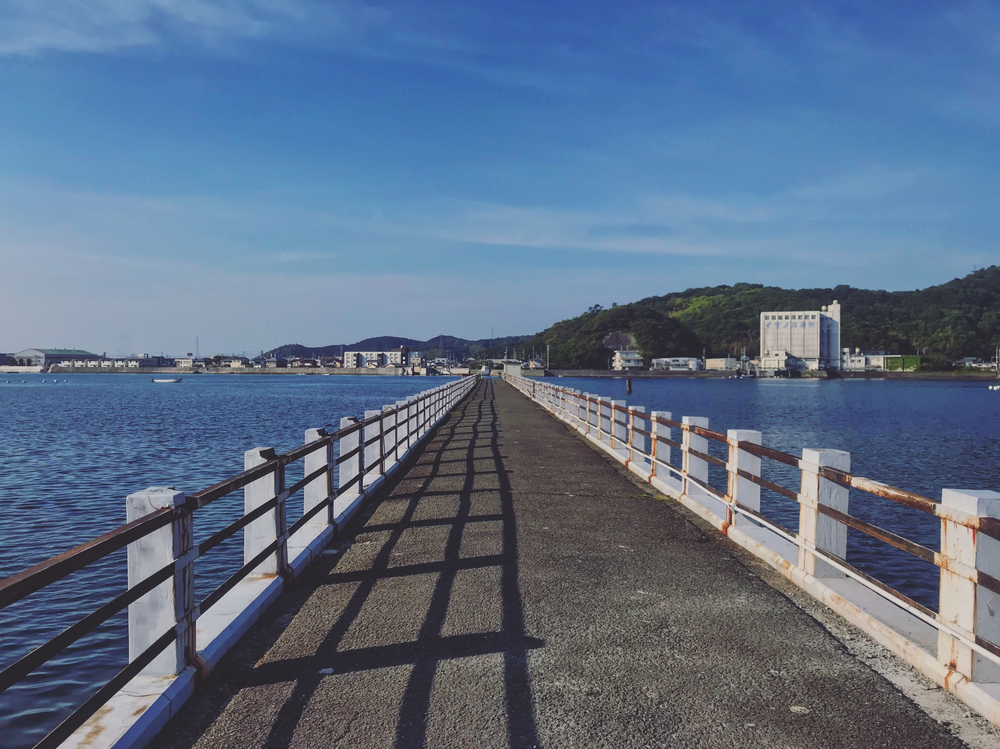 公園を突っ切り、11号線へ。ローソンの脇道を通り、小鳴門大橋の下へ。また海沿いに出て、下から小鳴門大橋を見ながら走ります。途中高島〜黒崎への渡船場があり、その先まで走って寄り道。