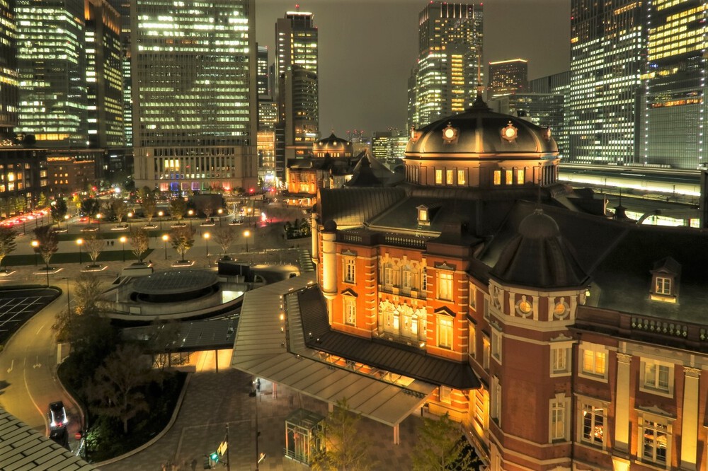 写真を撮るには、雨上がりの夜の東京駅が最高です! その他、面白いスポットとしては、東京ステーションホテルの2階に上がると、丸の内南口を見下ろせる場所があります。また、KITTEの屋上からの景色は日本夜景遺産にも登録されています。