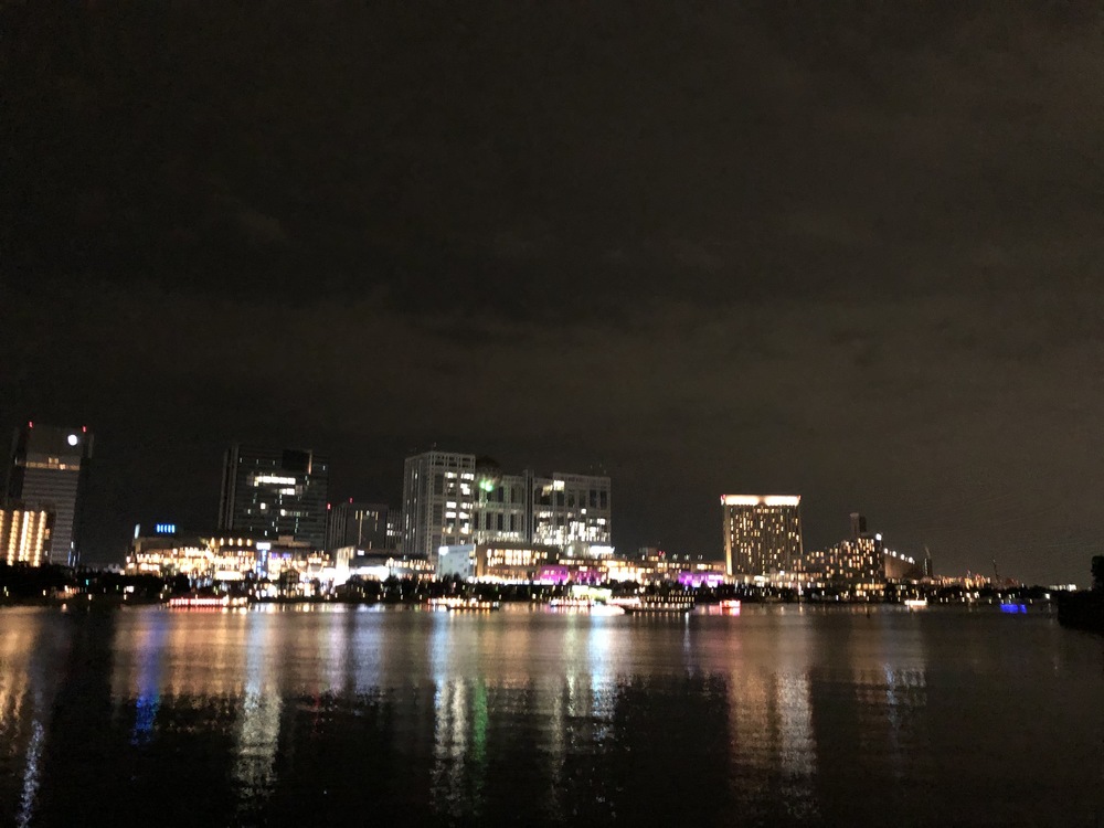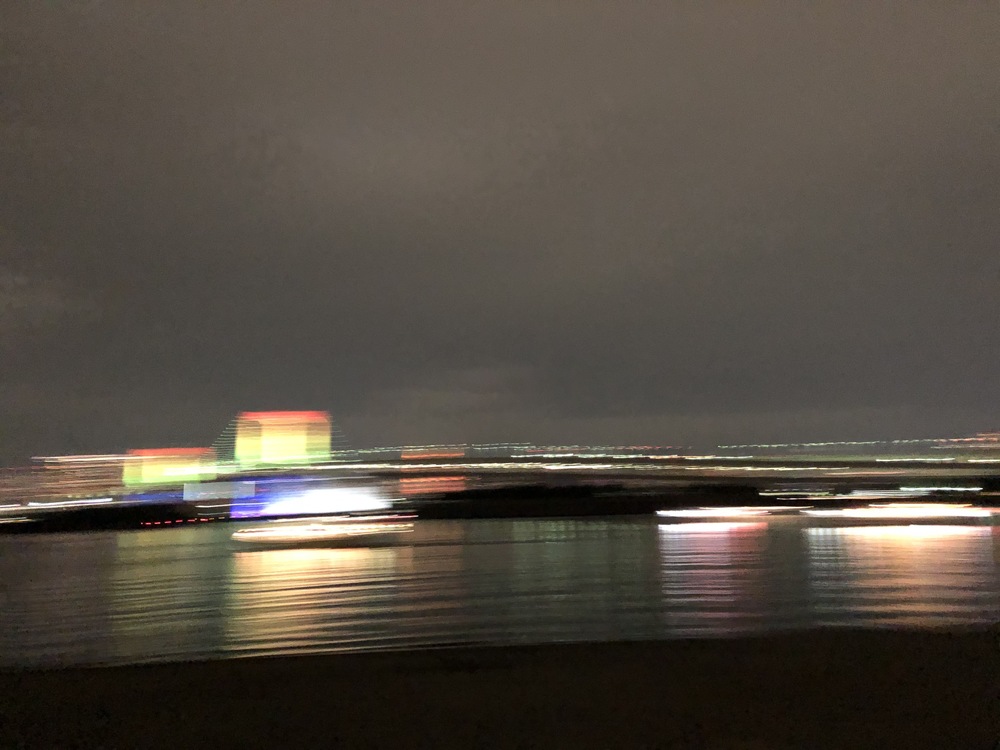 夜は屋形船など海に灯りがぽつぽつと浮かんでます⛴
