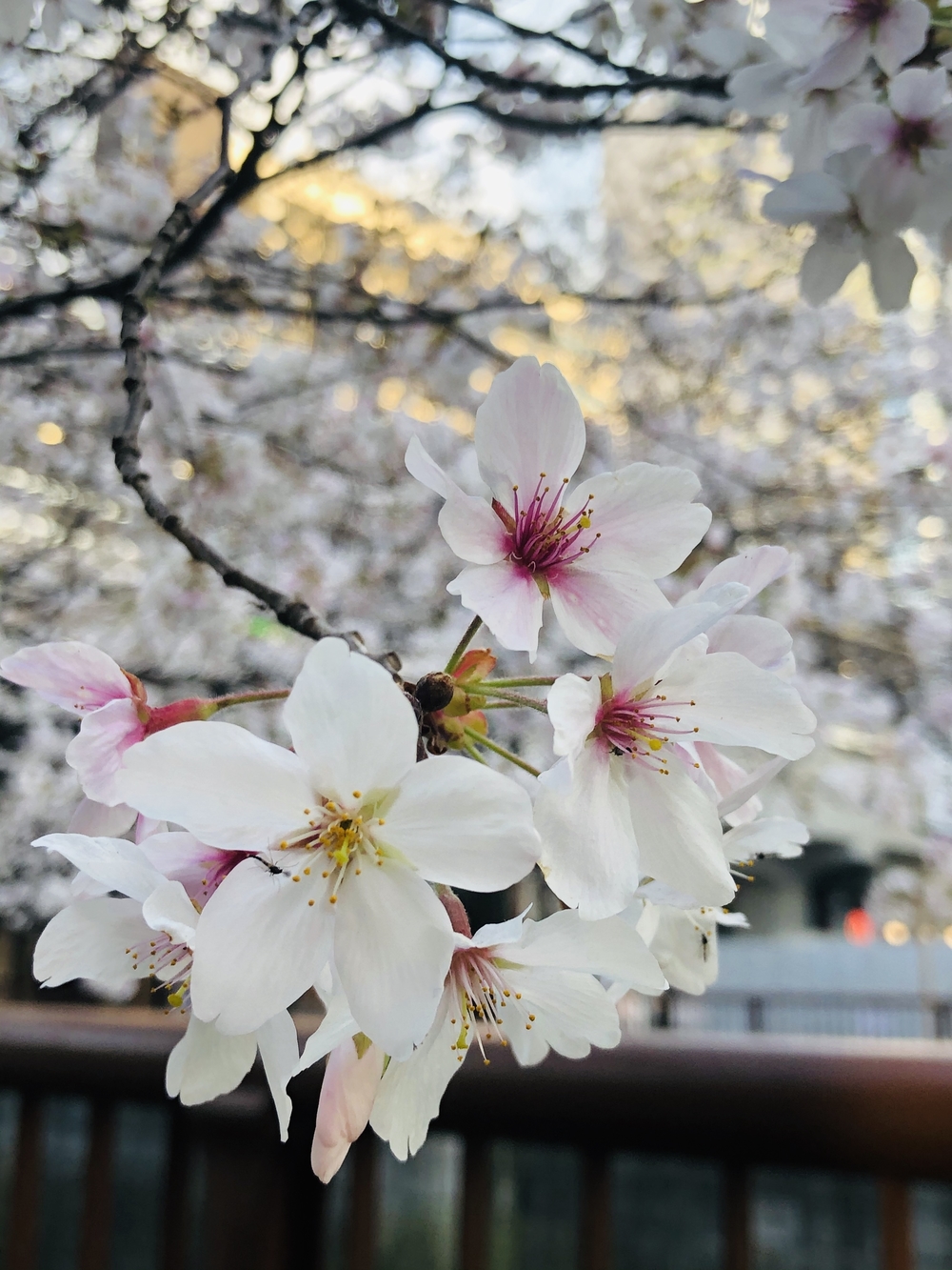 都内屈折のお洒落銭湯、清水湯を出発し、山手通りの桜街道を抜け、中目黒を目指します。目黒川沿いに立ち並ぶカフェ、レストラン、目黒川に映る桜を愛でた後、大橋にある、21時まで訪問できる天空公園へ。小高い丘に立つ庭園は都内のビルを背後に春の植物が華やでいます。