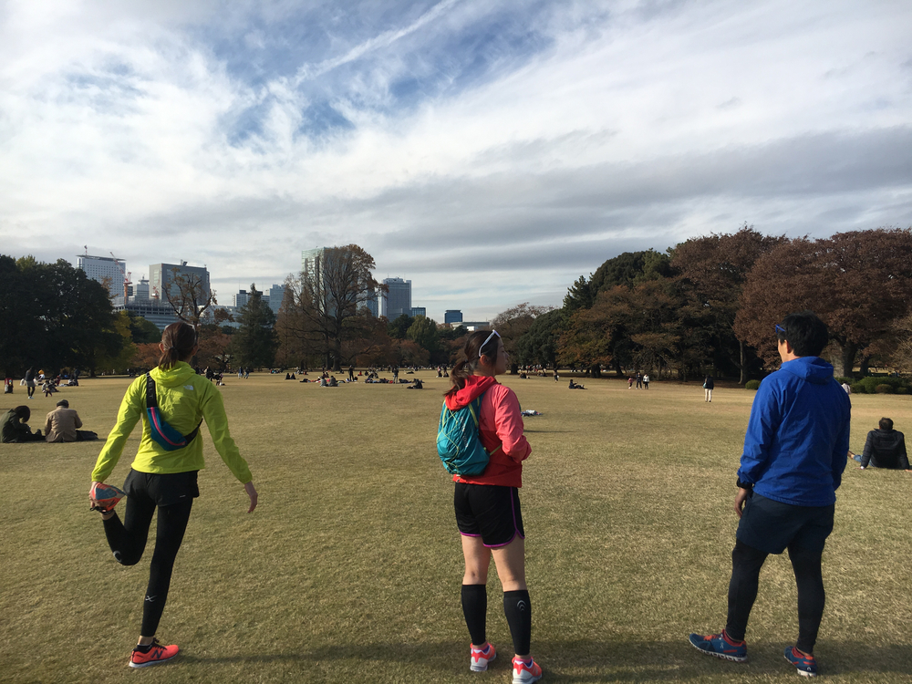 ゴールの新宿御苑はいろいろな木々の紅葉がいっぺんに見ることができますし、広い芝生でのんびりするのもおすすめです。