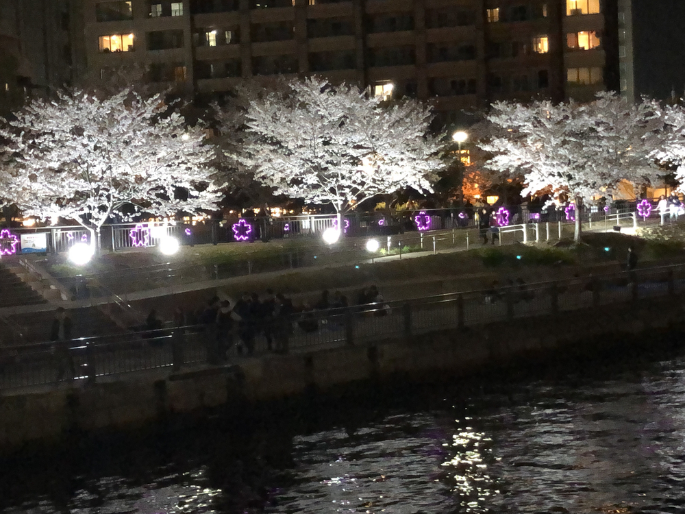 清水湯から、ひたすら目黒川沿いに咲き誇る桜を愛でるコース。中目黒付近の川沿いは、歩いて何か食べながらゆっくり桜を眺めます。