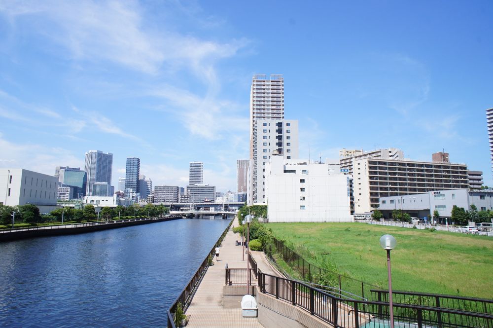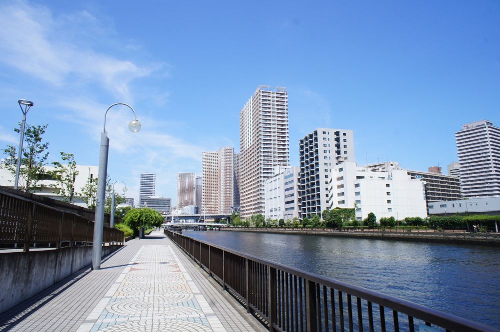 高層マンションやオフィスビルに囲まれた都会的な景色の中を、まっすぐに伸びる運河に沿って快適に走ることができます。街灯も多く整備されていて夜間でもOK。水面に写るビル群の灯りはまた幻想的です。