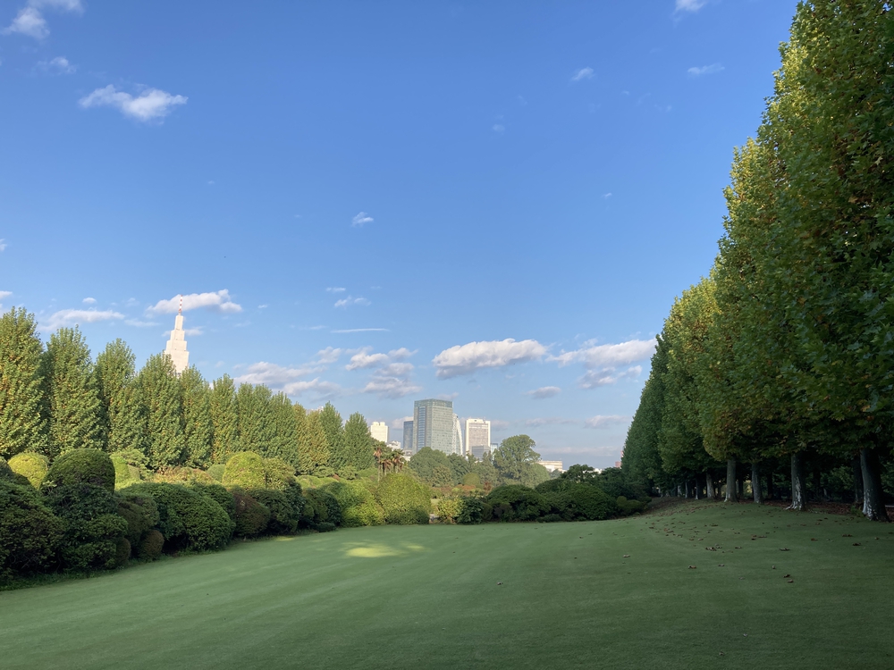 誰もいない朝の新宿御苑。