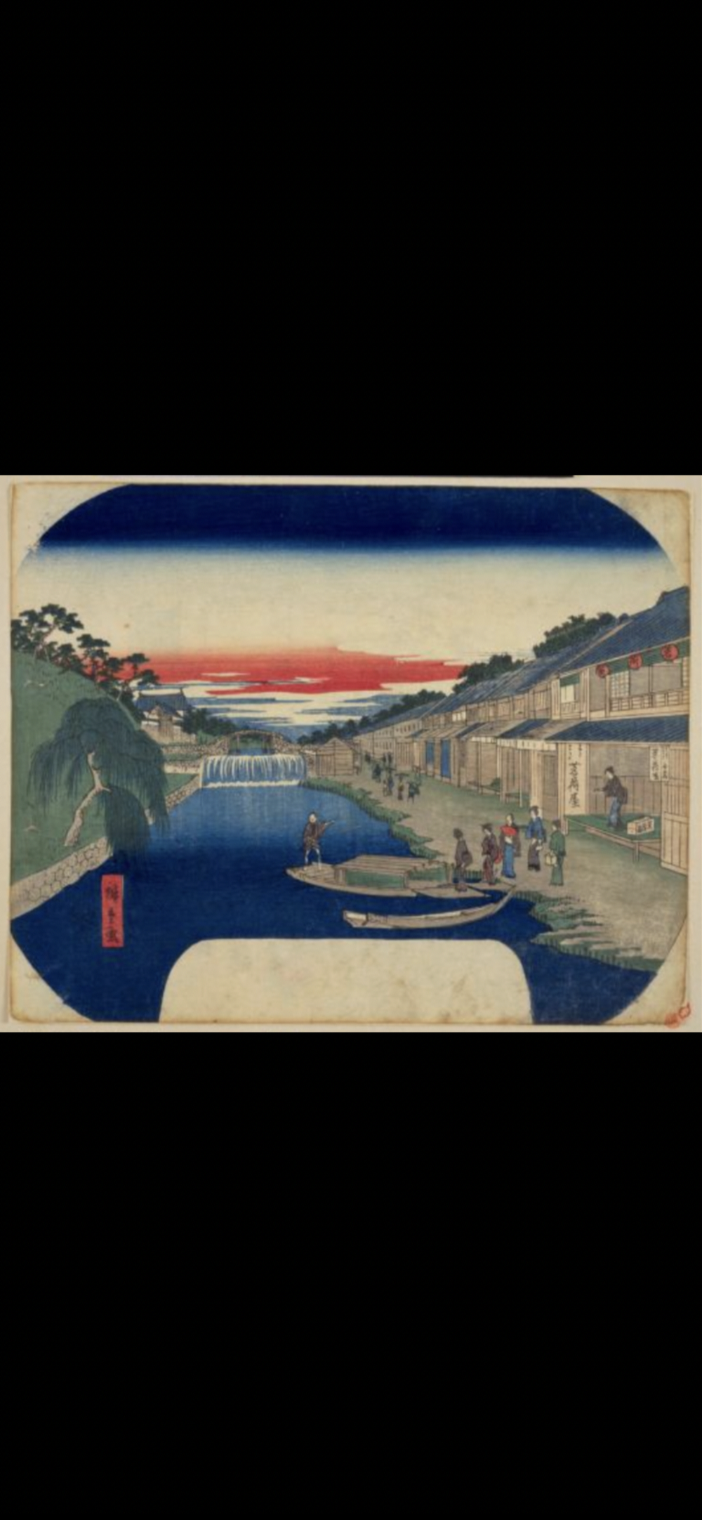 広重の「どんどんノ図 牛込揚場丁」を巡ります。どんどんは、絵にも描かれている牛込橋を渡る時に「どんどん」と音が鳴る事、揚場丁は、全国各地から船で運ばれて来た、米、味噌、醤油、酒、等が川づたいに上がり、この岸で「荷揚げ」された事が名前の由来とされています。今でも存在する、揚場町や牛込見附(御門)の石垣も巡ります。