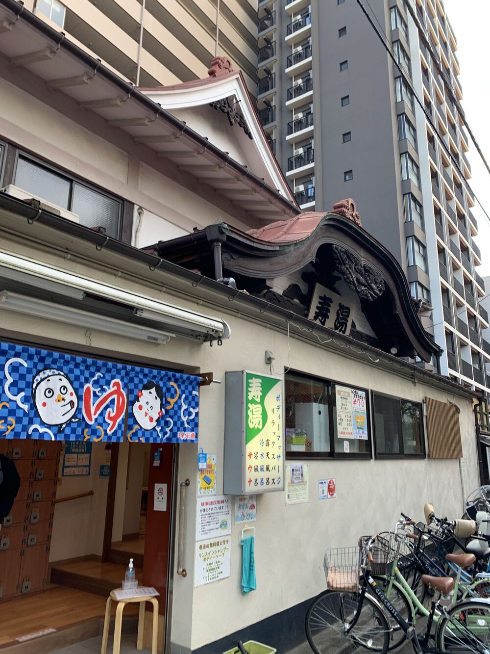 広重の「千住の大はし」を巡ります。江戸時代に隅田川に一番最初に架けられた橋らしいです。広重の作品の他に、松尾芭蕉の「奥の細道」の出発地点としても有名との事。冬らしい雲と共に写真におさめました。寿湯は、朝から開いて、荷物も預けられろので非常に便利です。