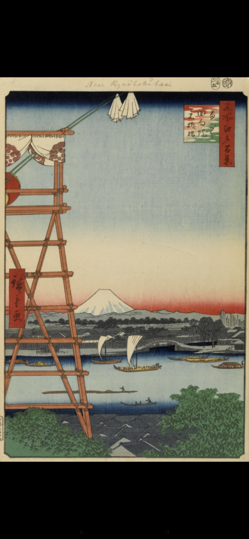 広重の「両ごく回向院元柳橋」を巡ります。江戸の大火で亡くなった人を供養する為に、回向院が建てられ、寄付と復興の為に、毎年2回ここで大相撲が行われていたそうです。今は、相撲は、国技館で開催されているので、千秋楽の晴天の日に撮影した櫓を記録に残しました。両国には至る処に相撲に因んだ物が点在しています。相撲の歴史は、遥か昔からあり、古事記や日本書紀にも、力比べの神話や天覧勝負の伝説が残っています。