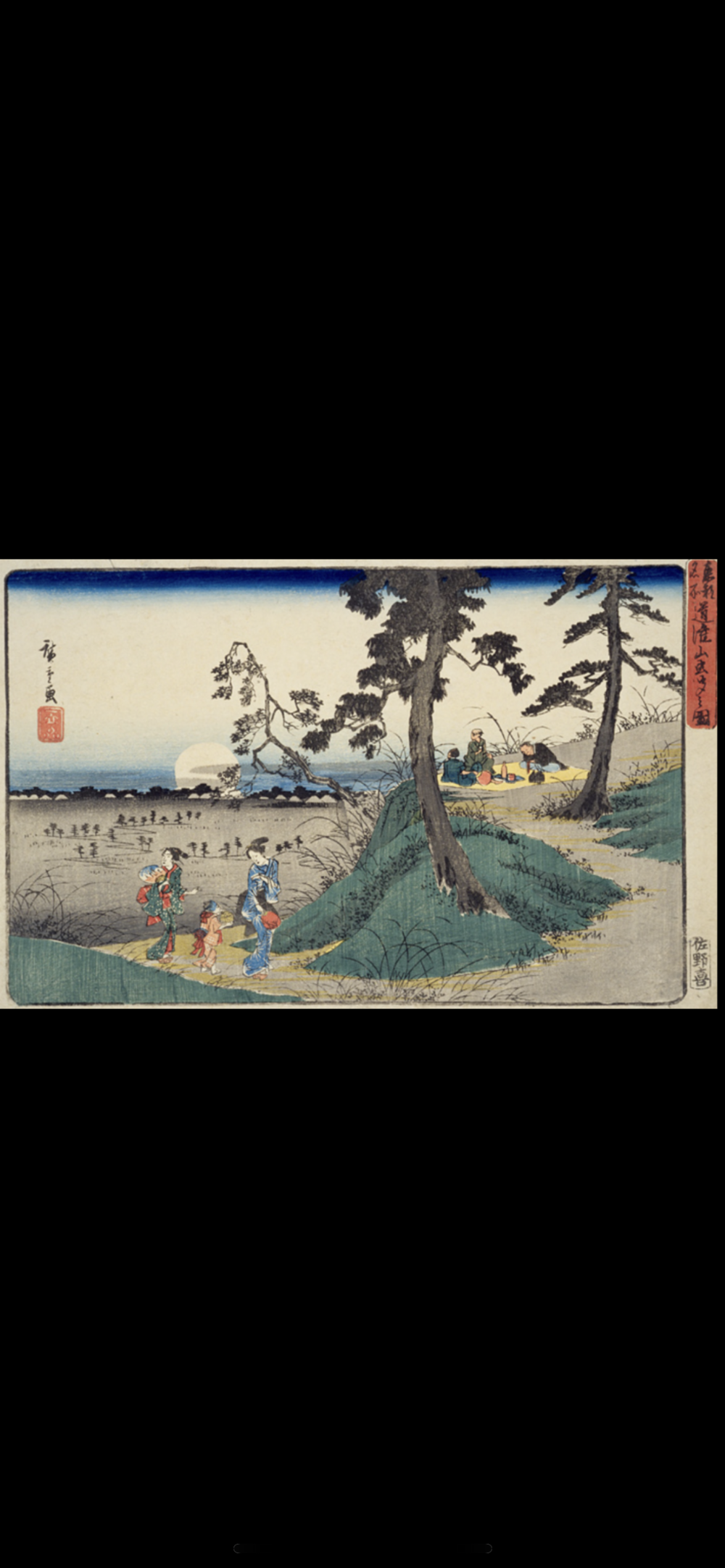 広重の「道灌山虫ききの図」を巡ります。道灌山は江戸時代「虫聞」の名所として有名だったそうです。場所によって鳴く虫が違うため、鈴虫の声を聞きたい時は飛鳥山、松虫の場合は、ここの道灌山とされていたそうです。それ程、当時の人々の虫の声への関心は高く、市中には竹かごに虫を入れて売り歩く虫屋もいたそうです。広重は、秋の月夜と共にこの作品を描きました。萩の湯から、芋坂、谷中霊園、観音寺の築地塀、夕焼けだんだん、富士見坂、等を巡りながら道灌山で夕暮れを待ちました。秋の到来を感じるRUNとなりました。