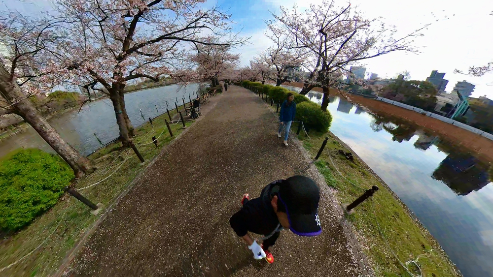 不忍池の桜並木は、池の水に囲まれた桜の並木道を大爆走できるので、何周でも何回でも走りたくなります。