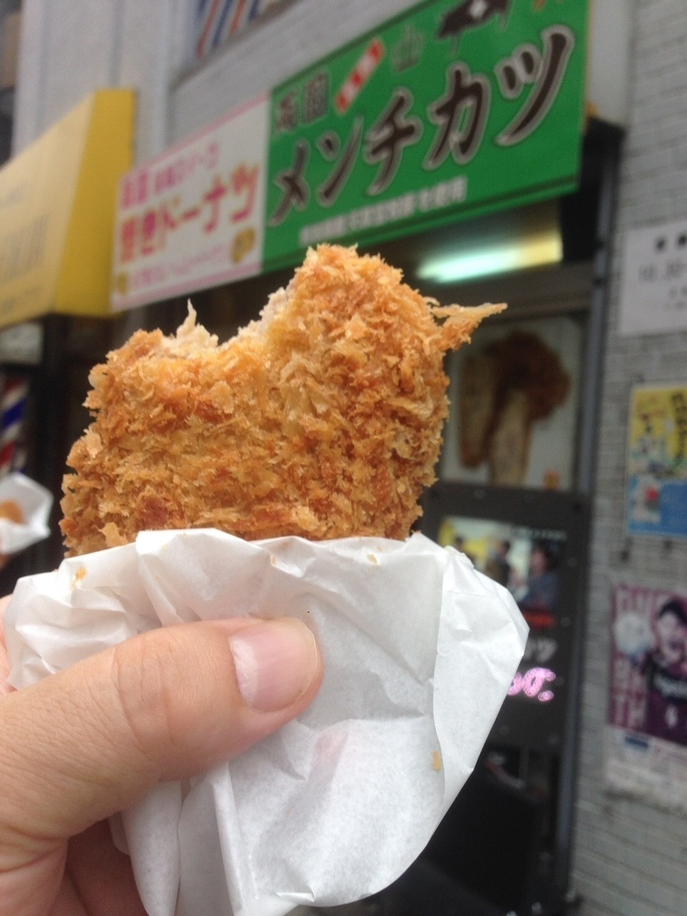 ・両国メンチカツ(年中無休)-両国駅近く。熱々のメンチカツ。