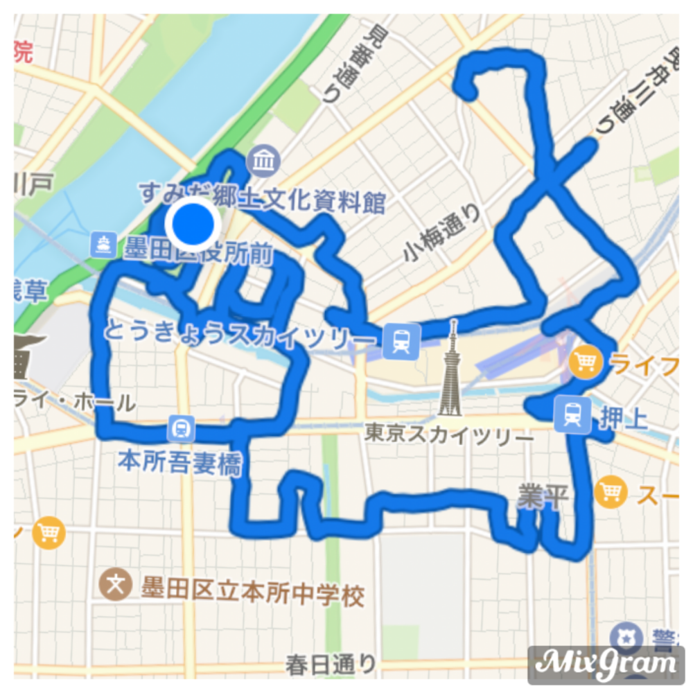 このコースは色々な角度からスカイツリーが見えて、楽しいですよ😋
