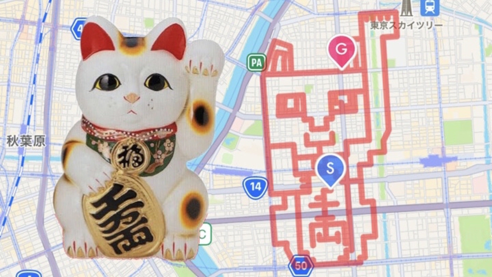 両国で千両小判を抱く招き猫のお絵描き