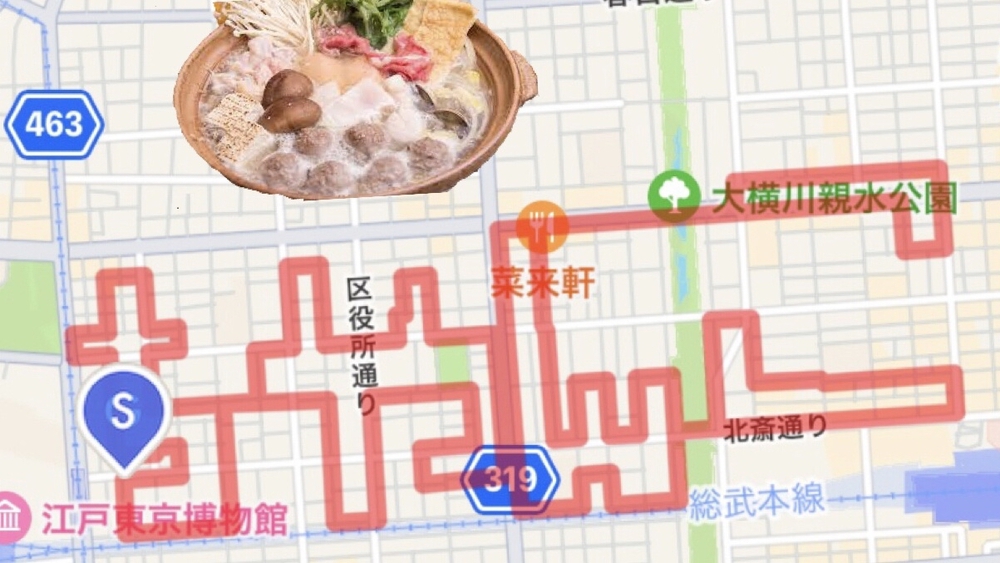 大江戸線両国駅を発着とし、錦糸町までの区間を行ったり来たりの9kmのシンプルなコース。
