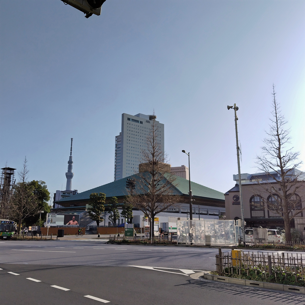 スタートとゴールはJR両国駅。目の前に国技館があります。小路を入ったところに隅田川テラスの入口があります。