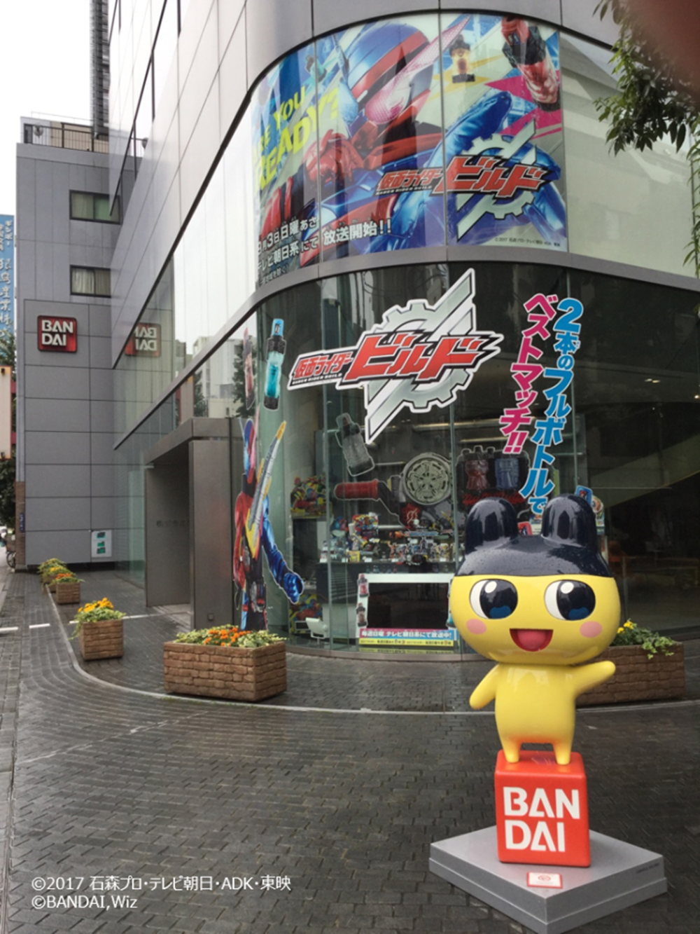 東間橋を渡って江戸通りを左折し、しばらくしたら右手に玩具メーカーの“バンダイ”の本社が見えてきます。さまざまなキャラクターが集合するレアな場所です。たまごっちや昔懐かしいキャラクターも多く、ファンにはたまらない場所といえるでしょう。