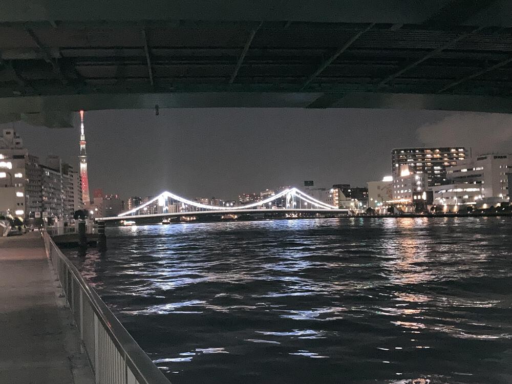 荒川と中川の間の中洲は、大会でも走ったことがありますが勾配も少なく自動車も来ないのでよいルートです。河川敷工事中で要注意ですが。今回は北寄りの強目の風に悩まされつつ、平井大橋で右岸に渡りさらに上流へ。押上線の手前で河川敷は離れ、水戸街道沿いに今度は隅田川へ。だいぶスカイツリーが大きくなってきても、まだまだ直下には行きつかない、、と言問橋で隅田川右岸へ。川沿いに橋をくぐりつつ永代橋まで、快調に下ります。他にも投稿されていますが、夜のライトアップされた橋巡りがいい。両国の西向かいの合流点は、最後まで行ってしまうと渡れないので早目に堤防の外に出ること、土地勘ない私には注意点でした。あと結構この辺りまでクラゲが来てるのにも驚き、、最後は永代通り一本で東陽町にゴールのつもりでしたが、門前仲町は賑やかで走ると迷惑かと迂回。