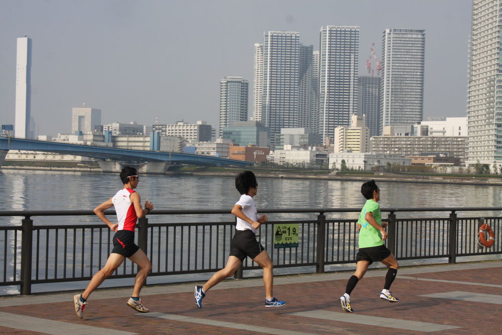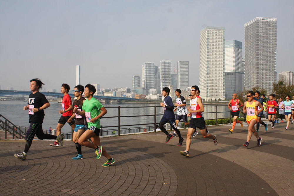 天気のいい日に走るとき持ちよいコースです。写真は先日開催された豊洲マラソンです。