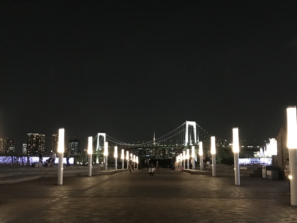 夜の台場エリアは夜景スポット満載、ガンダムが立ちはだかる、でなかなか前に進めませんのでシリアスランナーは避けてください(笑)
