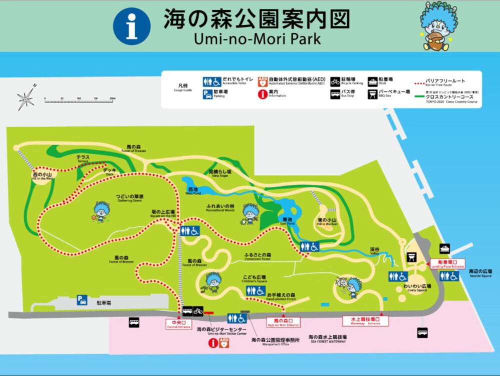 公園の目の前には海の森水上競技場があり、カヌーやヨガ、ノルディックウォークのイベントが行われているのでそちらをメインで帰りに公園を散策、ランニングも良いかもしれません。