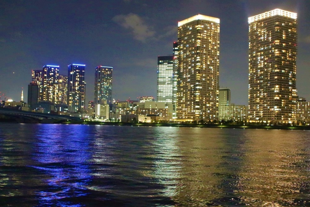 レインボーブリッジや観覧車、東京のビル群が夜の海にきらきらと反射して光るのを眺めながら走ることができます。