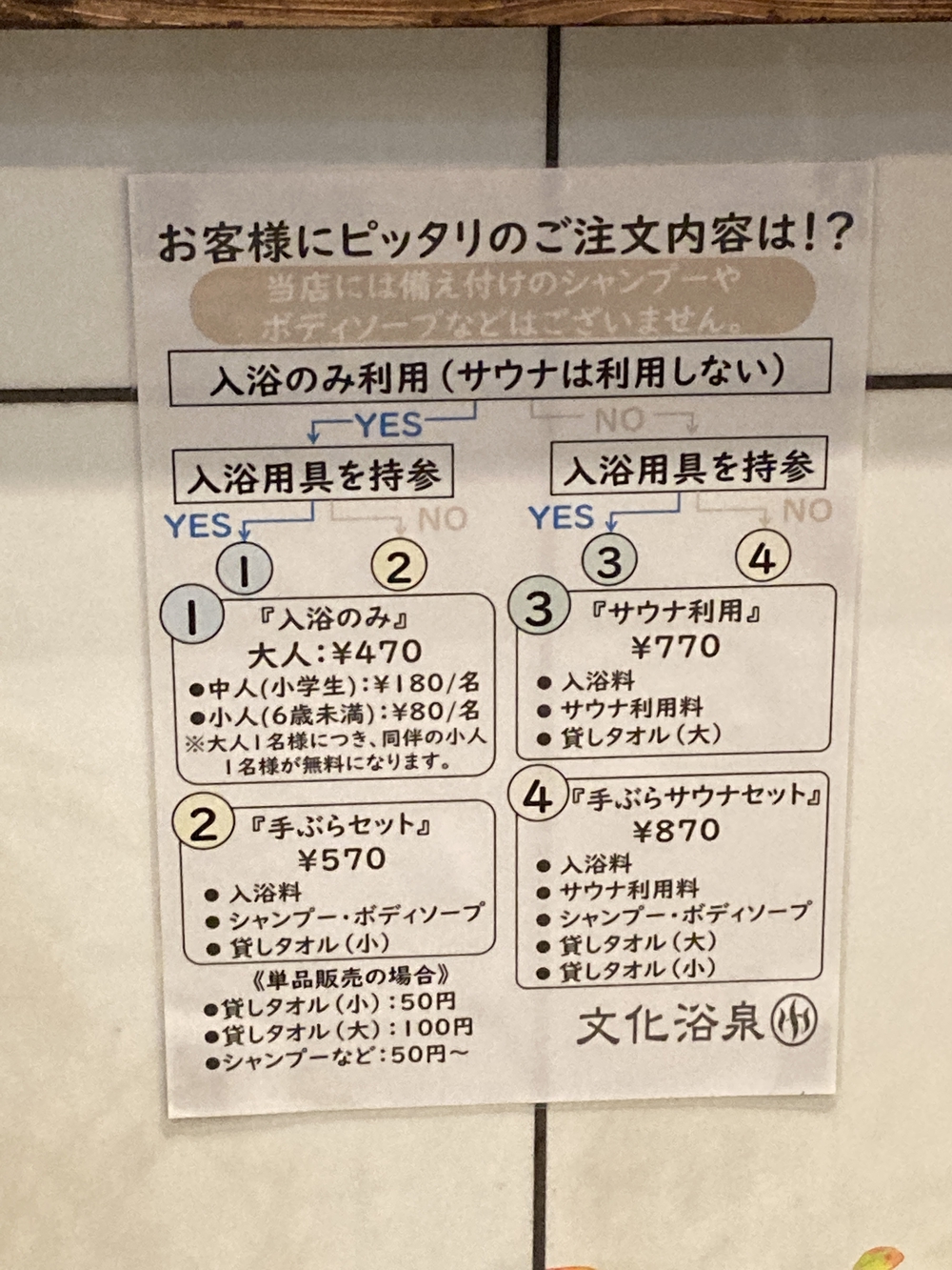 文化浴泉さんの写真も入れていますが、タオルを持たずとも利用出来るようなメニューもありますし、良いお風呂だと思います