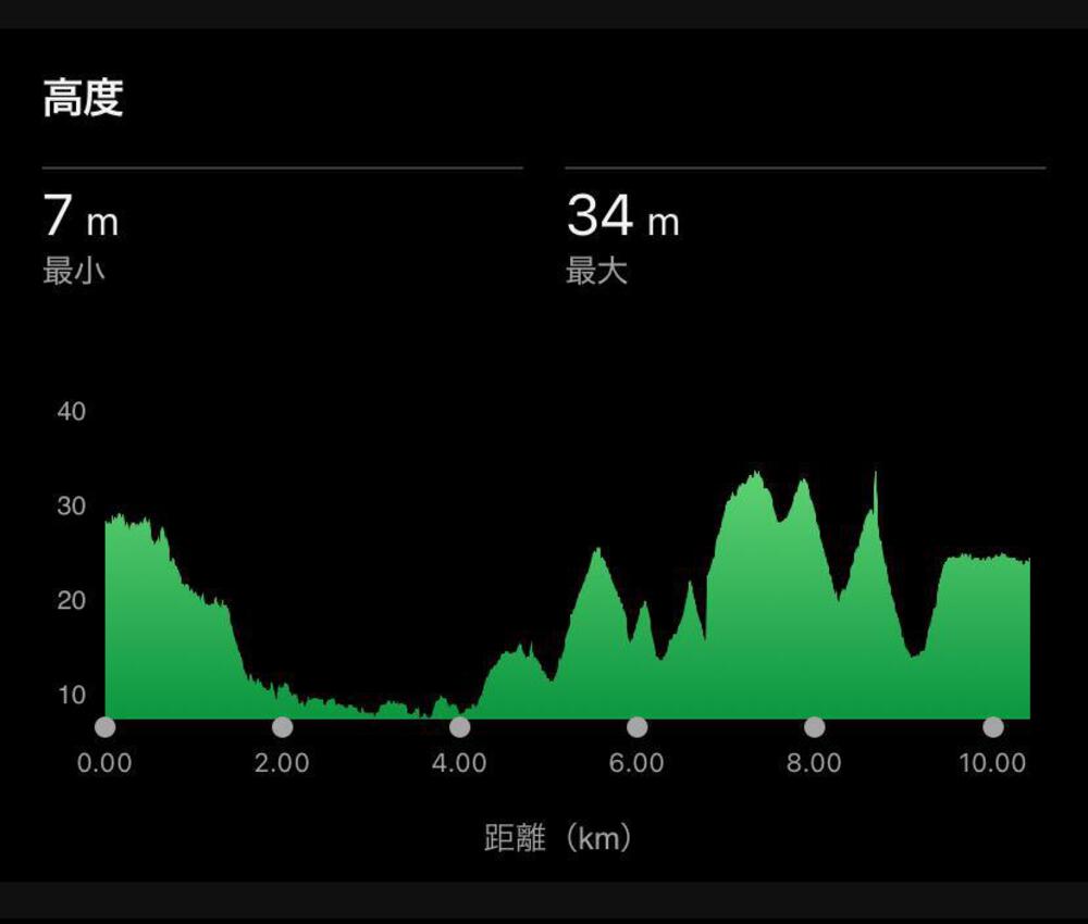 スタートから2kmはなだらかな下りですが、4km地点から複数のアップダウンがやってくるイイ感じのコースになってます。