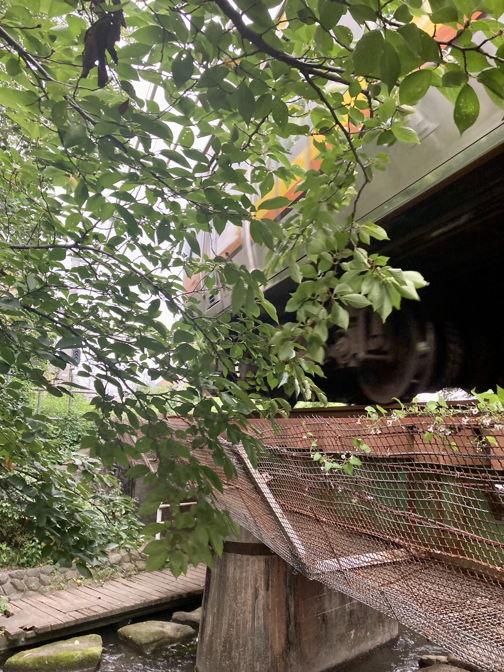 多摩川だけの往復ではもったいない!久地円筒分水から二ヶ領用水を通って登戸の手前までの別ルート。壮観の桜並木や目の前まで南武線が迫る鉄橋をくぐったり、樹々と水辺に親しむ春はもちろん秋にオススメのコースです。