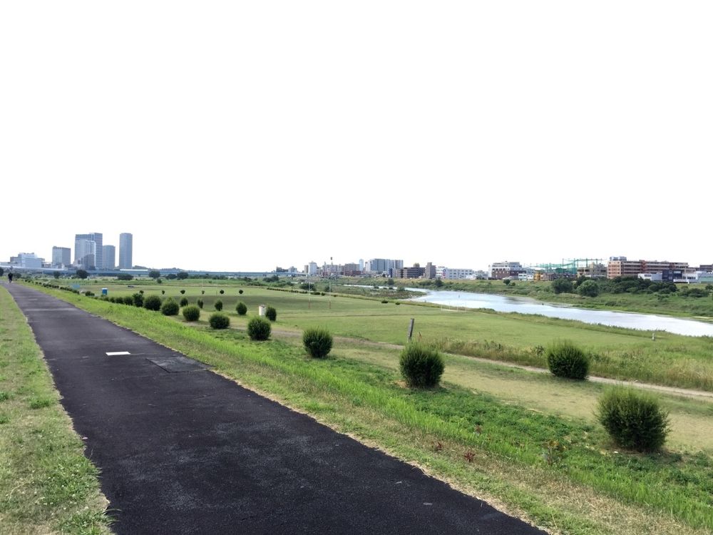 二子玉川駅から兵庫島に向かい、多摩川サイクリングコースを左折し上流方面に向かいます。