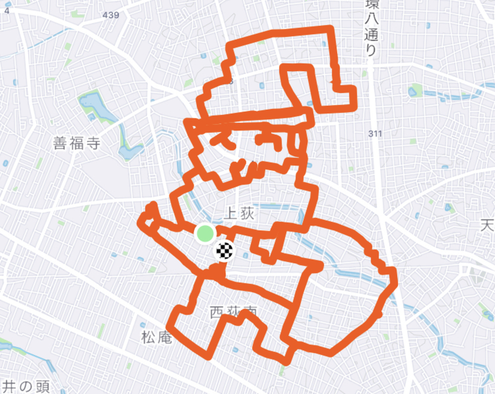 西荻窪駅を起点にサンタクロースを描くお絵かきラン、静かな住宅街を走ります。顔だけ描くのも可能です。