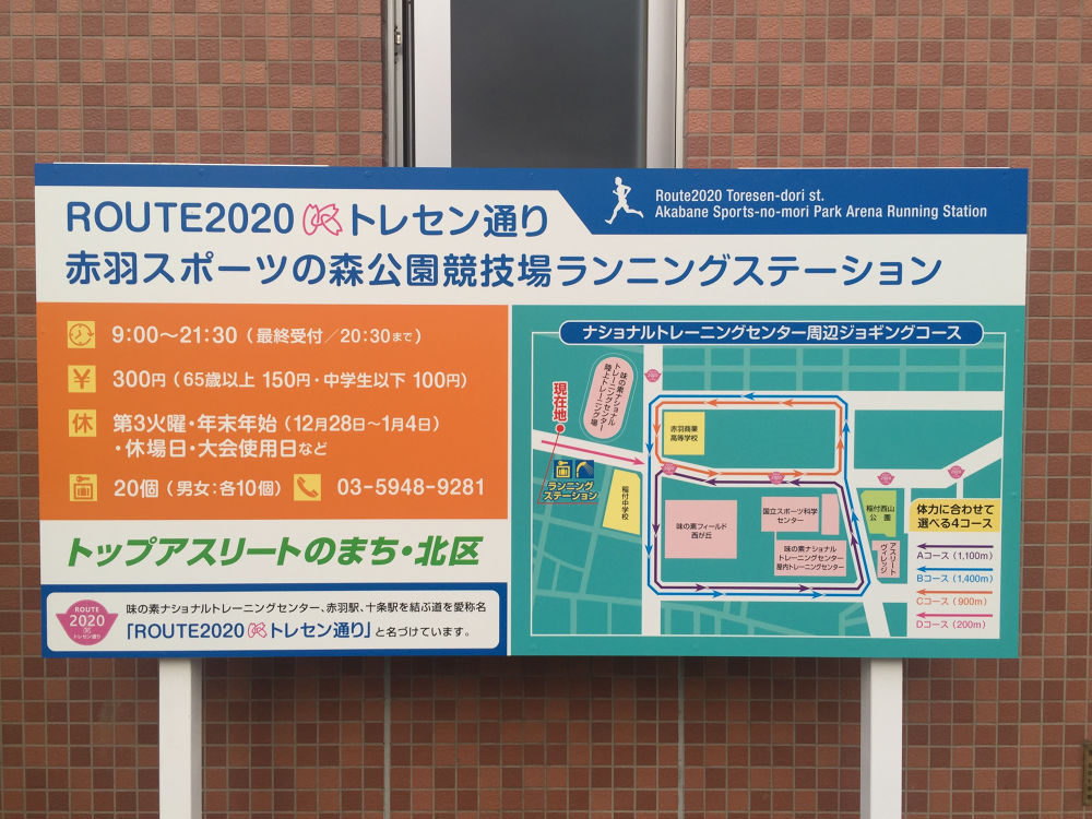 国内スポーツの拠点である国立スポーツ科学センターや味の素ナショナルトレーニングセンターがある東京都北区で、東京オリンピックに向けて名付けられた【ROUTE2020トレセン通り】を走るコースです。