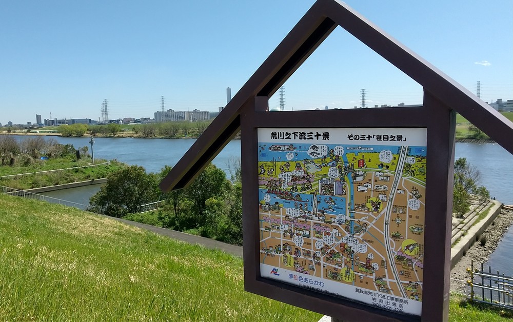 戸田市側には戸田桜づつみがあって、春には満開の桜を眺めながら走ることができます。
