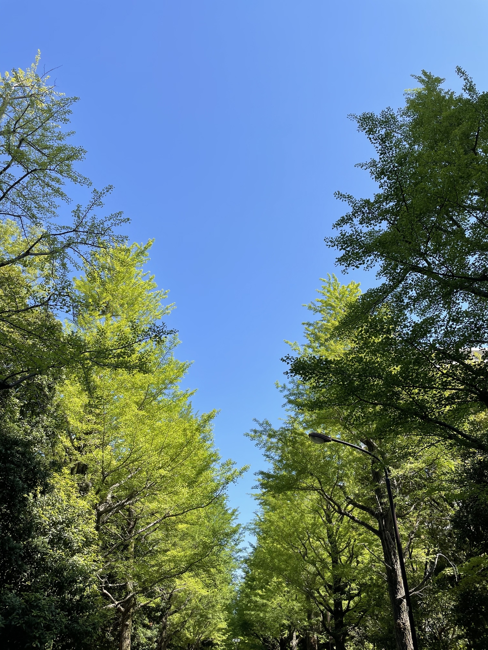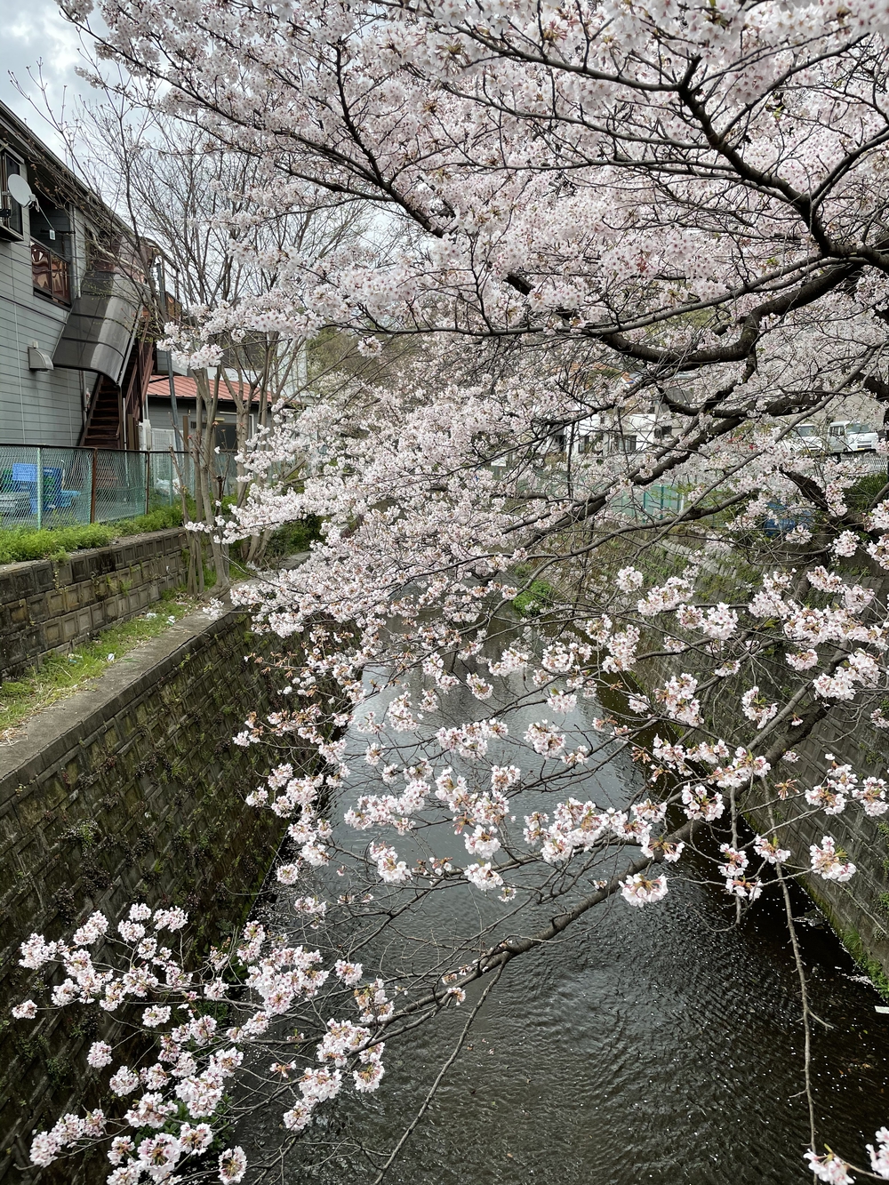 川のせせらぎを眺めながら、公園の緑を眺めながら。