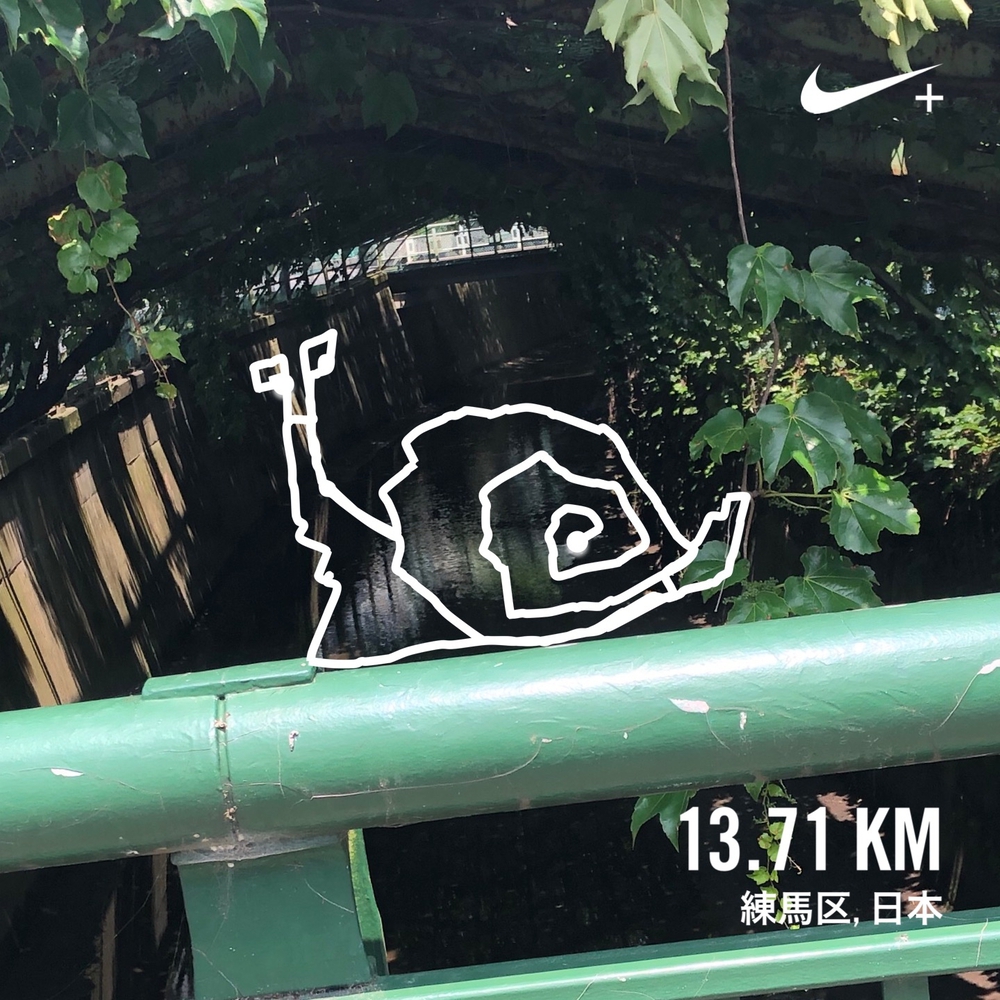 杉並区・善福寺公園付近を走るかたつむりのお絵かきランです。梅雨時のランにいかがでしょうか。かたつむりだけに、のんびりと走ったり歩いたりするのもありかも。
