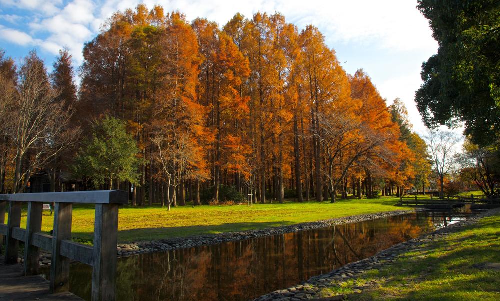 広大な敷地内をゆっくり走るには最適の場所です。毎年、寒くなるにつれてメタセコイアの森の木々が素晴らしい色合いで、見る者全てを魅了します。